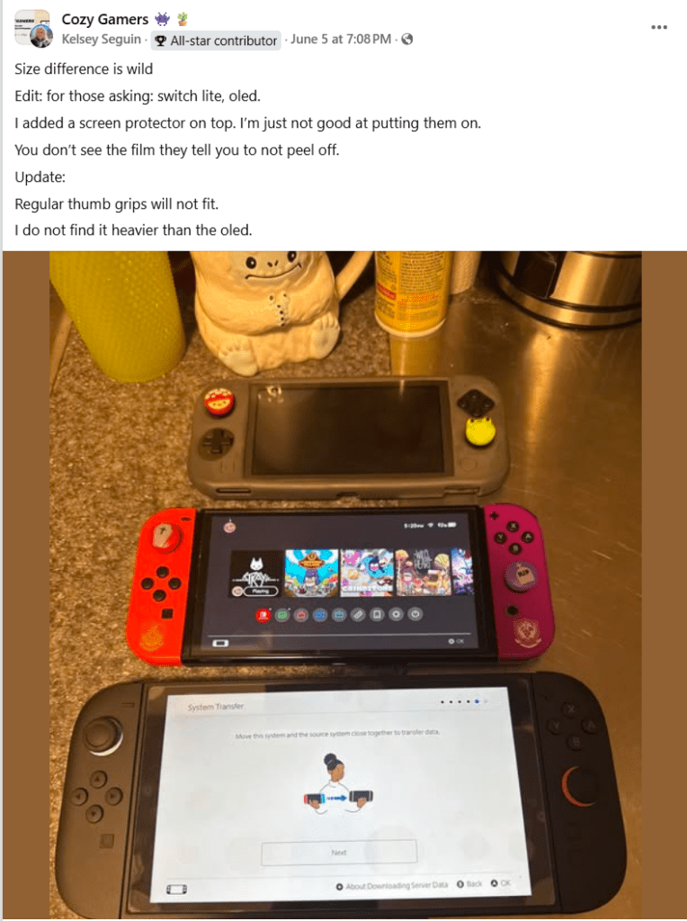Kelseyโs side-by-side comparison of the Switch Lite, OLED, and the new model sparked a ton of helpful conversation around size, weight, and accessory compatibility